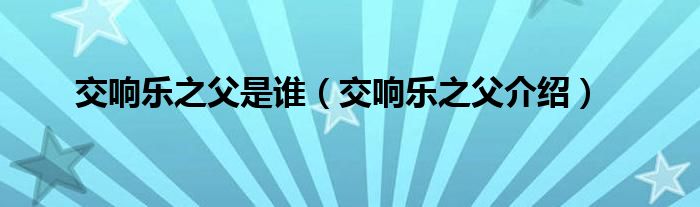本文,交响乐之父是谁,交响乐之父介绍到此就分享完毕,希望对大家有所帮助。