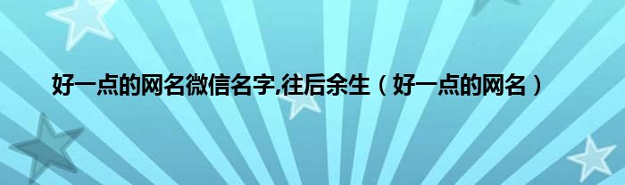 以上就是【好一点的网名微信名字,往后余生,好一点的网名】相关内容。