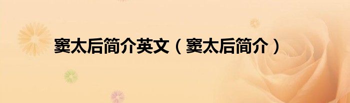 本文,窦太后简介英文,窦太后简介到此就分享完毕,希望对大家有所帮助。