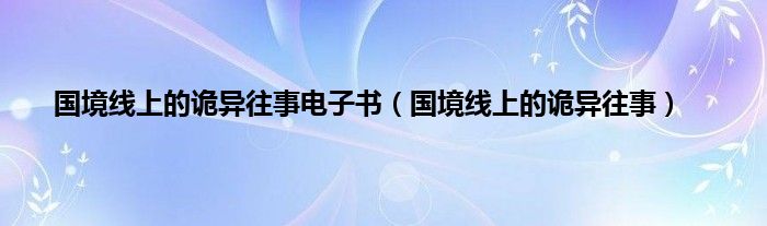 大家好,小问来为大家解答以上问题。国境线上的诡异往事电子书,国境线上的诡异往事这个很多人还不知道,现在让我们一起来看看吧!