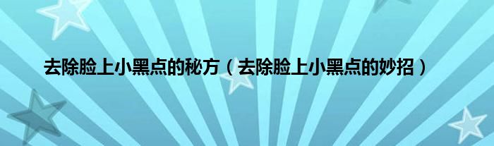 大家好,小问来为大家解答以上问题。去除脸上小黑点的秘方,去除脸上小黑点的妙招这个很多人还不知道,现在让我们一起来看看吧!