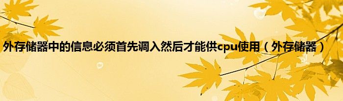 大家好,小问来为大家解答以上问题。外存储器中的信息必须首先调入然后才能供cpu使用,外存储器这个很多人还不知道,现在让我们一起来看看吧!