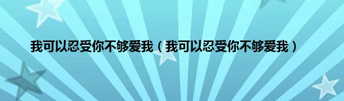 以上就是【我可以忍受你不够爱我,我可以忍受你不够爱我】相关内容。