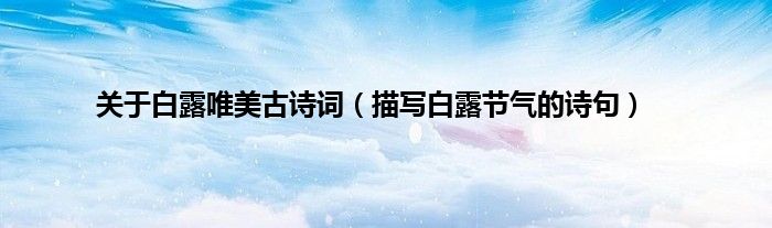 大家好,综合小编来为大家讲解下。关于白露唯美古诗词,描写白露节气的诗句这个很多人还不知道,现在让我们一起来看看吧!