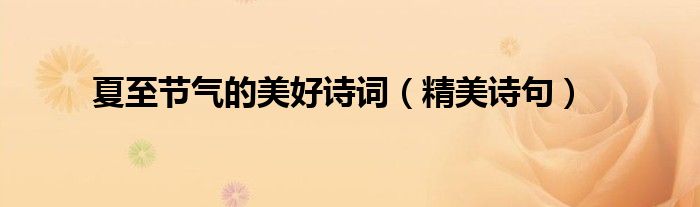 大家好,综合小编来为大家讲解下。夏至节气的美好诗词,精美诗句这个很多人还不知道,现在让我们一起来看看吧!