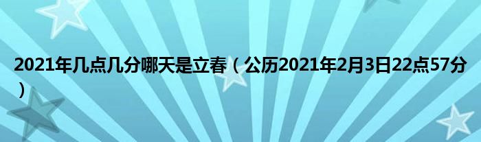 大家好,综合小编来为大家讲解下。2021年几点几分哪天是立春,公历2021年2月3日22点57分这个很多人还不知道,现在让我们一起来看看吧!