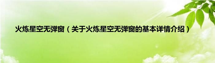 本文关于火炼星空无弹窗的基本详情介绍就讲解完毕,希望对大家有所帮助。