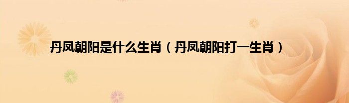 大家好,综合小编来为大家讲解下。丹凤朝阳是什么生肖,丹凤朝阳打一生肖这个很多人还不知道,现在让我们一起来看看吧!