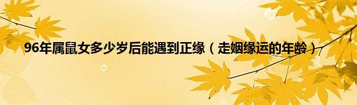 大家好,综合小编来为大家讲解下。96年属鼠女多少岁后能遇到正缘,走姻缘运的年龄这个很多人还不知道,现在让我们一起来看看吧!