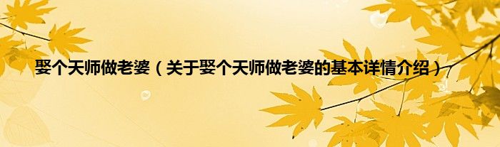 本文关于娶个天师做老婆的基本详情介绍就讲解完毕,希望对大家有所帮助。