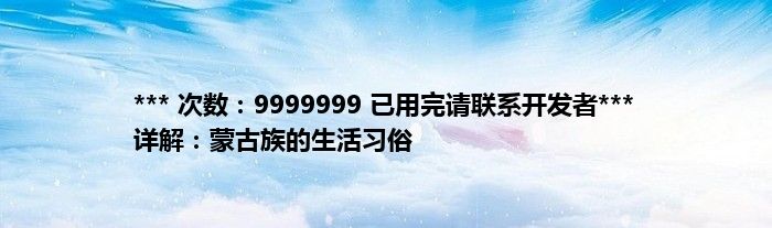 ***次数:9999999已用完请联系开发者***详解:蒙古族的生活习俗