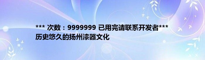 本文*** 次数:9999999 已用完请联系开发者*** 历史悠久的扬州漆器文化到此分享完毕,希望对大家有所帮助。