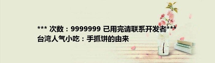 ***次数:9999999已用完请联系开发者***台湾人气小吃:手抓饼的由来