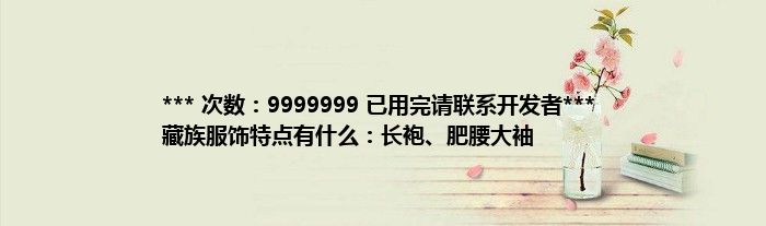 *** 次数:9999999 已用完请联系开发者*** 藏族服饰特点有什么:长袍、肥腰大袖