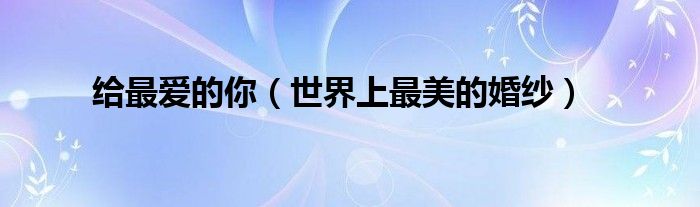 大家好,综合小编来为大家讲解下。给最爱的你,世界上最美的婚纱这个很多人还不知道,现在让我们一起来看看吧!