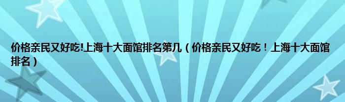 本文价格亲民又好吃!上海十大面馆排名第几,价格亲民又好吃!上海十大面馆排名到此分享完毕,希望对大家有所帮助。