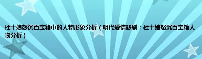 本文杜十娘怒沉百宝箱中的人物形象分析,明代爱情悲剧:杜十娘怒沉百宝箱人物分析到此分享完毕,希望对大家有所帮助。