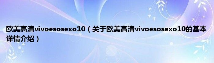 本文关于欧美高清vivoesosexo10的基本详情介绍就讲解完毕,希望对大家有所帮助。