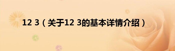 本文关于12 3的基本详情介绍就讲解完毕,希望对大家有所帮助。