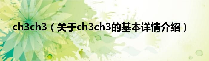 ch3ch3(关于ch3ch3的基本详情介绍)