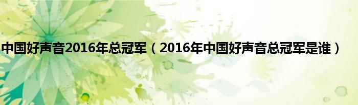 欢迎观看本篇文章,小升来为大家解答以上问题。中国好声音2016年总冠军,2016年中国好声音总冠军是谁很多人还不知道,现在让我们一起来看看吧!