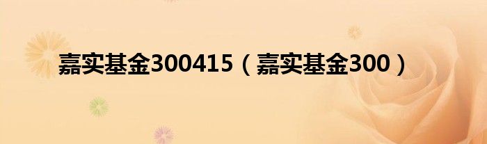 以上就是【嘉实基金300415,嘉实基金300】相关内容。