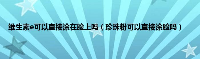 以上就是【维生素e可以直接涂在脸上吗,珍珠粉可以直接涂脸吗】相关内容。