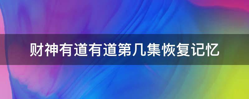 电视剧《财神有道》里,有道在第21集恢复记忆。如意来八王府找兰郡主,请求兰群主向皇上求情放了有道,兰郡主答应如意会进宫帮有道求情。小六来找如意说自己收了黑钱对不起有道,他愿意做证有道是清白的。有道被查明是清白的可以出狱,铃儿和如意、元宝来接有道,但有道却不理任何人,自己一直走到他爹娘的坟前,原来有道他恢复记忆了,什么都想起来了。《财神有道》是由蔡晶盛执导,陈键锋、钟欣桐、郑奇、何琢言、樊少皇、李国麟等主演的古装神话剧。