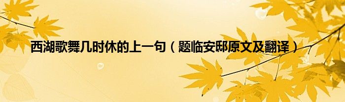 欢迎观看本篇文章,小升来为大家解答以上问题。西湖歌舞几时休的上一句,题临安邸原文及翻译很多人还不知道,现在让我们一起来看看吧!