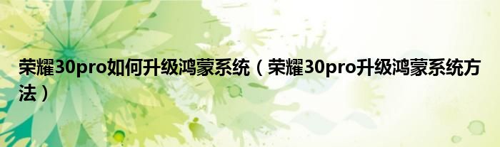 大家好,综合小编来为大家讲解下荣耀30pro如何升级鸿蒙系统,荣耀30pro升级鸿蒙系统方法这个很多人还不知道,现在让我们一起来看看吧!