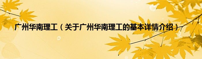 广州华南理工(关于广州华南理工的基本详情介绍)