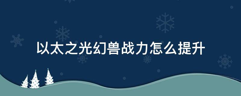 以太之光幻兽战力怎么提升