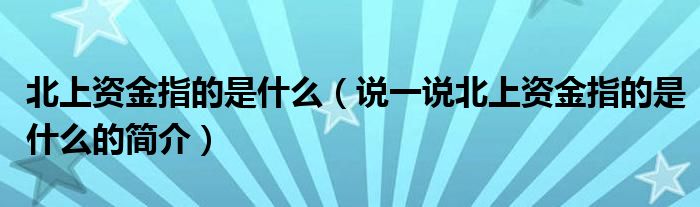 北上资金指的是什么(说一说北上资金指的是什么的简介)