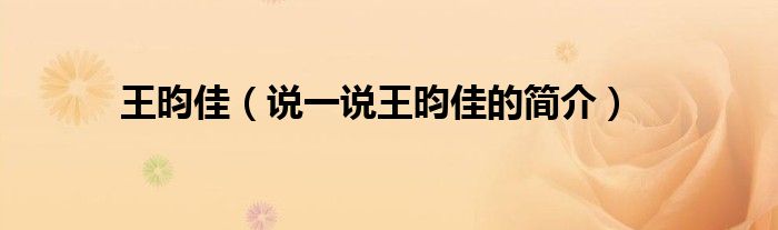 夏弥来为大家解答以下的问题,王昀佳,说一说王昀佳的简介,现在让我们一起来看看吧!
