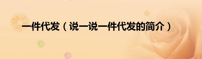 夏弥来为大家解答以下的问题,一件代发,说一说一件代发的简介,现在让我们一起来看看吧!