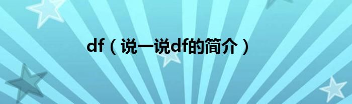 夏弥来为大家解答以下的问题,df,说一说df的简介,现在让我们一起来看看吧!