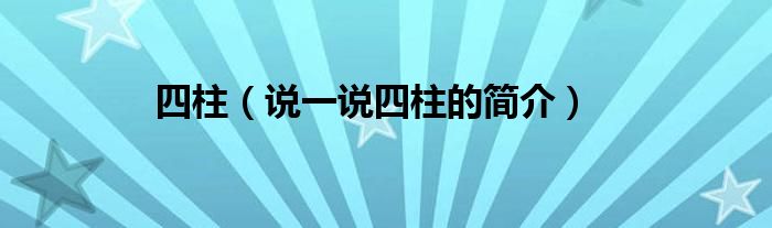 四柱(说一说四柱的简介)