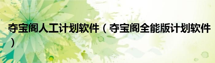关于夺宝阁人工计划软件,夺宝阁全能版计划软件这个很多人还不知道,今天菲菲来为大家解答以上的问题,现在让我们一起来看看吧!