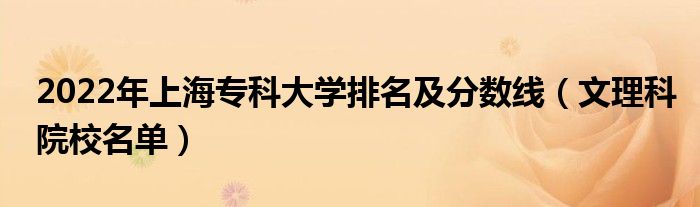 大家好,乐儿来为大家解答以下问题,2022年上海专科大学排名及分数线,文理科院校名单很多人还不知道,现在让我们一起来看看吧!