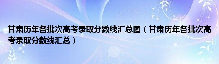 大家好,乐儿来为大家解答以下问题,甘肃历年各批次高考录取分数线汇总图,甘肃历年各批次高考录取分数线汇总很多人还不知道,现在让我们一起来看看吧!