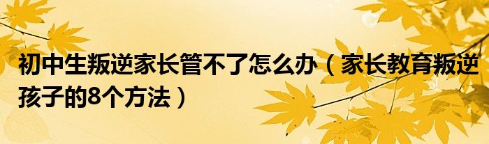 初中生叛逆家长管不了怎么办(家长教育叛逆孩子的8个方法)