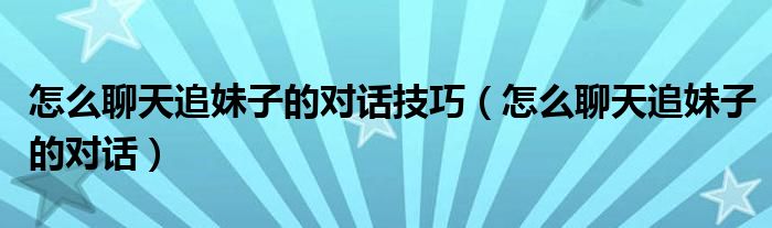 怎么聊天追妹子的对话技巧(怎么聊天追妹子的对话)