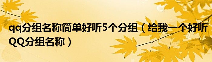 关于qq分组名称简单好听5个分组,给我一个好听QQ分组名称这个很多人还不知道,今天菲菲来为大家解答以上的问题,现在让我们一起来看看吧!