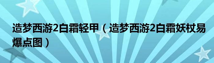关于造梦西游2白霜轻甲,造梦西游2白霜妖杖易爆点图这个很多人还不知道,今天菲菲来为大家解答以上的问题,现在让我们一起来看看吧!