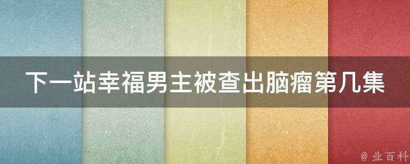 下一站幸福男主被查出脑瘤是第8集。在该集剧情中任光晞得了脑瘤,慕橙决定陪他一起面对。该电视是由三立电视台、台湾电视公司联合出品的偶像剧,由吴建豪、安以轩、吴慷仁、许玮甯、小小彬主演。