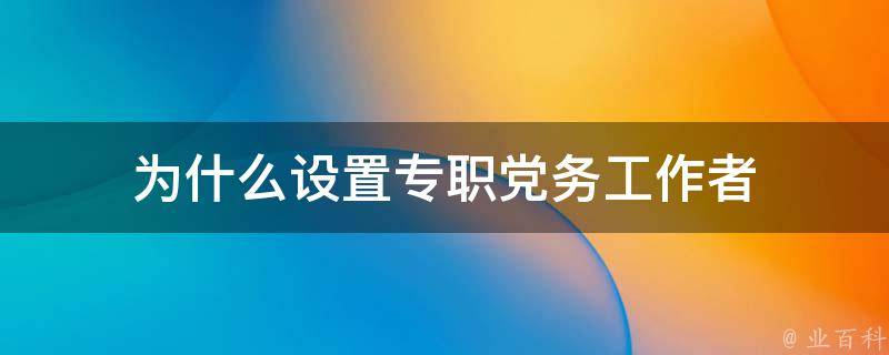 设置专职党务工作者是为了推进和谐社会建设,加强基层党组织和干部队伍建设,扩大基层党建工作的覆盖面。专职党务工作者工作职责包括:负责公司党建活动、工会与群团、会议的组织实施及文件撰写工作;党组织相关理论宣传、学习,开展开展基层党组织建设工作;制定完善公司企业文化制度,全面推动企业文化的建设等。