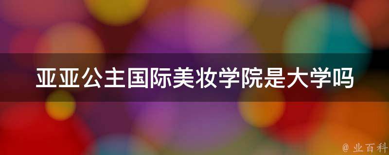 亚亚公主国际美妆学院不是大学,而是一家私营企业。亚亚公主美妆学院于2010年由西安美协总会副会长曹亚飞女士创建,公司贯彻针对性、实践性的教学理念,不但提供技能教学,还有完善的就业保障,为学员提供创业扶持。