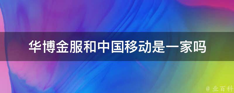 华博金服和中国移动不是一家,这两家公司是独立的实体。华博金服是一家中国的金融科技公司,专注于为金融机构提供技术解决方案和创新金融服务。他们的主要业务包括互联网金融、支付结算、投融资服务等。而中国移动是中国最大的移动通信运营商之一,提供移动通信服务和相关产品。作为中国电信集团公司之一,中国移动负责移动通信领域的运营和管理,包括移动通信网络的建设、手机卡业务、数据业务等。