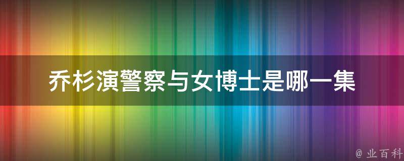 乔杉演警察与女博士是第一集。在电视剧《约定》中,乔杉饰演的警察大周,救下因为受不了父母催婚而跳楼的女博士苏婷。《约定》这部剧以农村脱贫致富、养老和社会保障、年轻人创业、教育振兴以及大国工匠等社会民生议题为创作基础,讲述了中国百姓在全面建成小康社会过程中自身生活变化的故事。