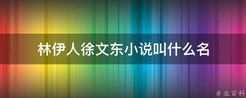林伊人徐文东小说叫什么名
